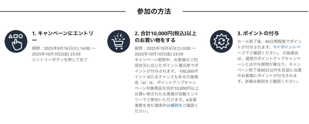 2025年のプライムデーでは最大10,000ポイントが還元されるキャンペーンが開催されます。