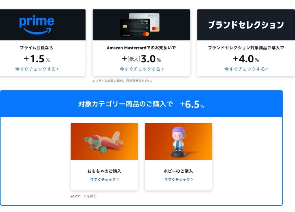 Prime会員は達成できるとして、マスターカードとブランド・おもちゃは人による感じですね。