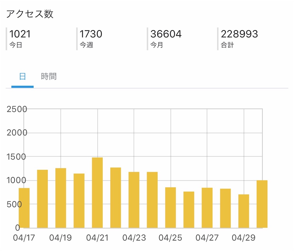 4月はプレゼント企画を行ったので、1日の最高アクセス数が2299人に伸びました。